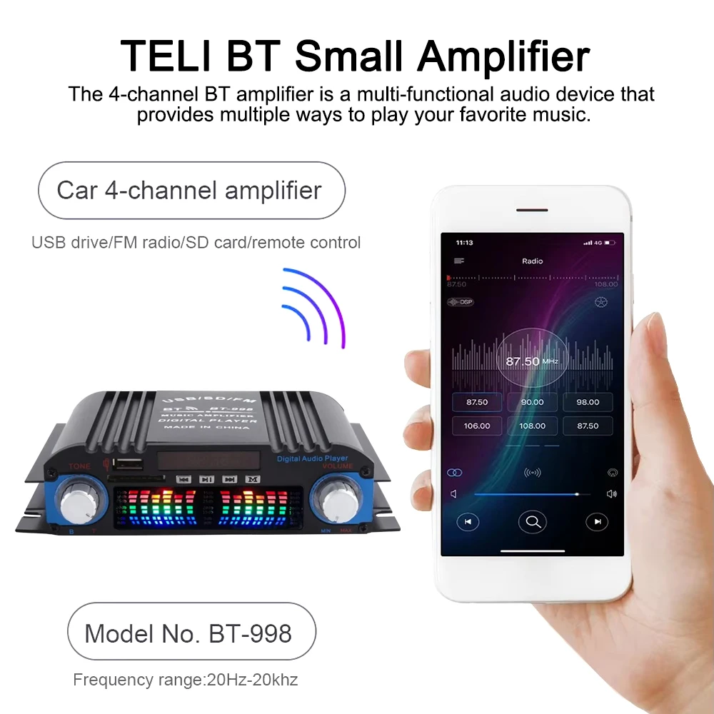 -The 4-channel Bluetooth amplifier is a versatile audio device that provides multiple ways to play your favorite music.