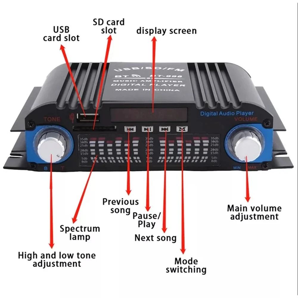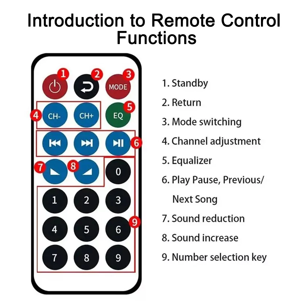 Main features: U disk/FM radio/SD card/Remote control