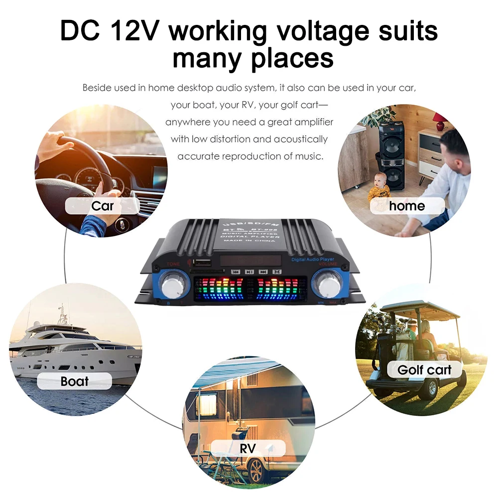 -DC12V power input, suitable for home or car.