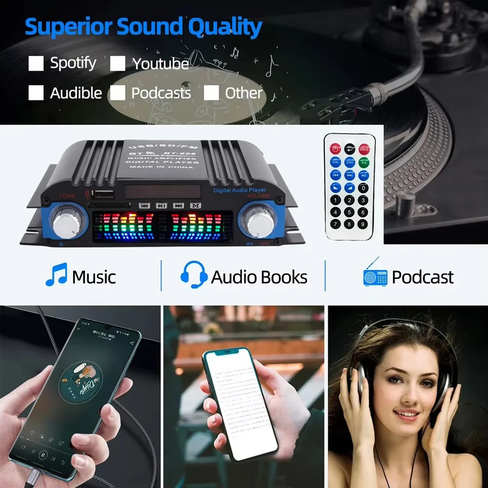 -Mini HIFI digital Bluetooth audio power amplifier.